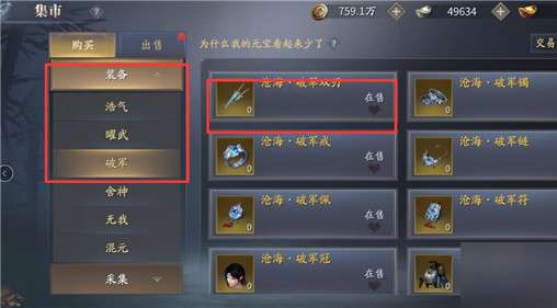 ③集市购买:集市可以够买其他玩家摆摊上架的黄色品质装备,需要花费银两进行购买,大家也可以通过贩卖多余的黄色装备来赚取银两,以交换到自己想要的部位的黄色装备