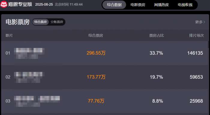 猫眼实时票房最新查询入口为用户提供了便捷、准确、丰富的票房数据查询服务。无论是电影爱好者想要了解电影市场动态、选择观影影片,还是从业者想要分析电影市场表现、制定营销策略,都可以通过猫眼实时票房查询系统获取到有价值的信息。