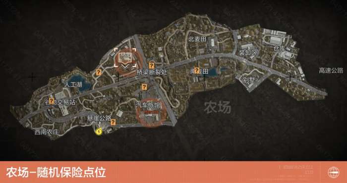 农场中共有6处随机保险刷新点,分别位于麦田小屋、回收站、汽车旅馆北部、人工湖东北边小屋、南装卸区、谷物交易站。
