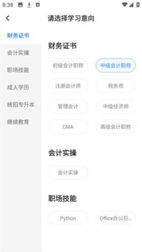 2、之了课堂软件上不仅为用户显示了从初级到高级的会计考试,更是提供了各种不同方向的考证学习;