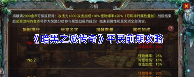 《暗黑之城传奇》平民前期攻略: