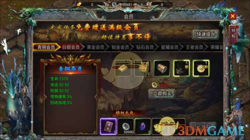 6、会员等级可通过打怪收集精灵点卡免费提升,会员等级越高,加成越高,礼包越丰厚,前期大家加油打怪吧。