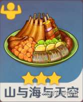 美食品鉴:山与海与天空根据道具描述和各种肉类的素材,现实中的原型应该是卤肉拼盘。卤肉拼盘的历史可以追溯到春秋时代,当时已经有了食品雕刻艺术,但并非真正的拼盘。到了唐代,出现了用菜肴仿制园林胜景的习俗,但这并不限于冷用。宋代,出现了以冷盘仿制园林胜景的形式,如宋代寺院中用冷菜组制的仿王维辋川别墅的图景,被认为是世界上最早的拼盘。