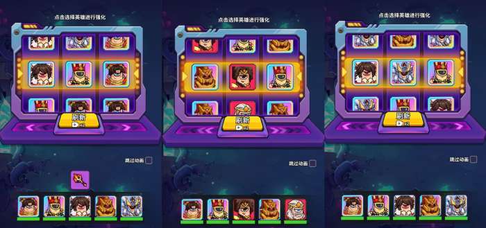 随机刷出3个英雄buff供玩家选择,英雄buff仅给当前选择的英雄带来增益效果。