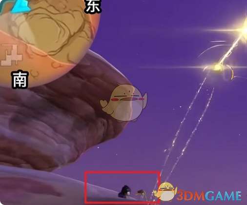 2、开始挑战后,往西北方向飞,去前放的石头上面。