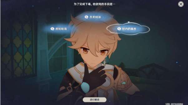4、进入调查现场环节中,玩家要交互房间内指引的五处位置