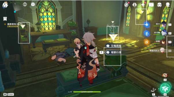 5、这时需要在此处调查现场,然后交互图中3处指引位置后和艾梅莉埃对话