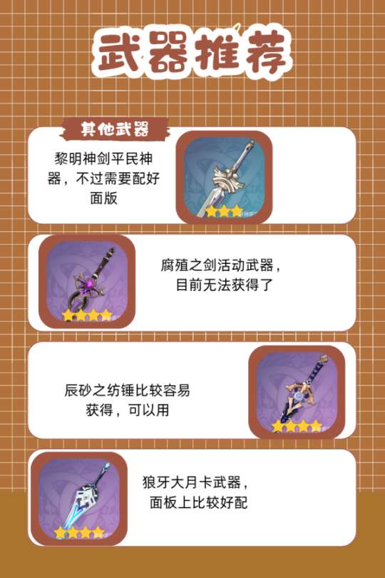 钟离的作用:在该配队中,钟离不需要高盾量,应尽量提高其自身的伤害,如攻击沙、岩伤杯、暴击头和护摩之仗。