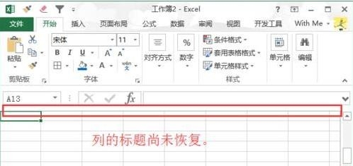 4、设置后,工具栏,编辑栏都已经恢复,但是仍旧没有显示标题栏,就是大家常说的A列B列,行1行2等。