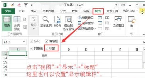 5、再次点击菜单栏的“视图”,找到“显示”并单击其中的“标题”即可正常使用。
