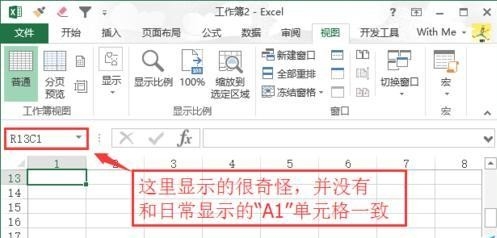 6、设置完成,有一个地方很奇怪,日常使用单元格的时候,我们常常会看到A1,A2这样的,可恢复后,看到excel显示R1C1类似这样奇怪的字符。
