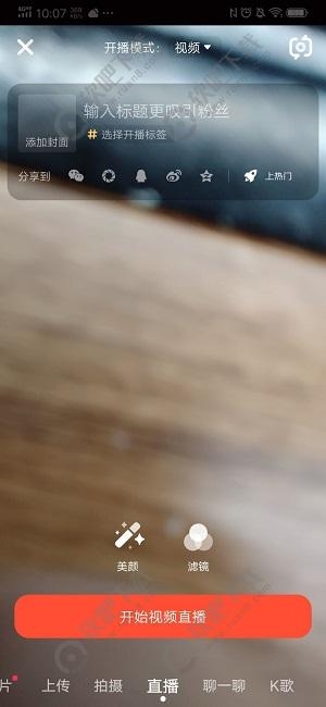 3、点击之后即可进入直播界面,在这里用户可以设置直播视频的滤镜以及特效等,调节好之后点击【开始直播】即可进行直播;
