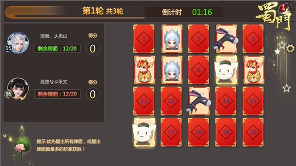 最考验仙侣cp默契度的活动莫过于【欢乐对对碰】了,心有灵犀的两个人需要在最短的时间内找出所有相同的卡片,信任度、默契度、配合度缺一不可,最快完成的仙侣cp也将获得来自蜀门世界的奖励祝福,而不论是否获得胜利都将获得【情与箭】聊天框碎片及仙魂的奖励。