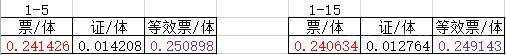 可以看到1-5的票收益是比1-15高的,但差距仅每体0.000792票左右。