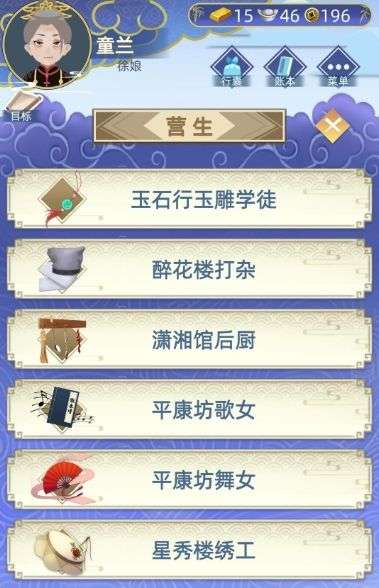 闺塾线在家待嫁学习闺塾技巧(也能选择学门手艺),初始只能学习三个技巧,每个技巧均可接单赚钱。