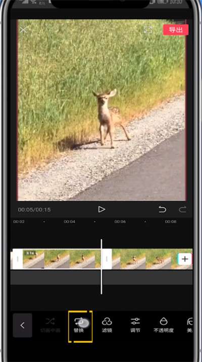 6、点击中间片段,点击替换