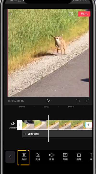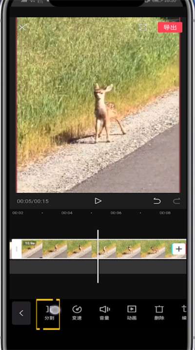 4、点击剪辑,将光标滑动到要叠加的位置点击分割