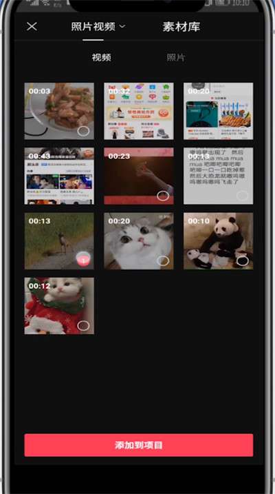 3、选择一段视频点击添加到项目