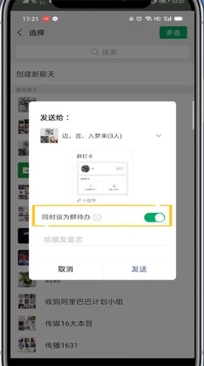6、发送到自己的群里勾选设为群待办即可