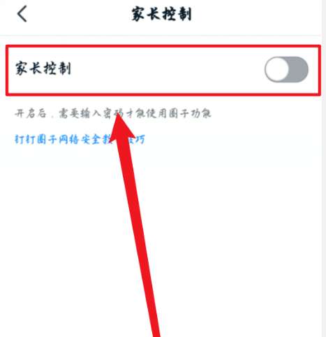 4、最后,点击家长控制旁边的按钮即可打开,设置之后必须家长同意孩子才能看圈子了。