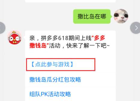 第五:自动回复【多多撒币岛】入口点击【点此参与游戏】按钮。