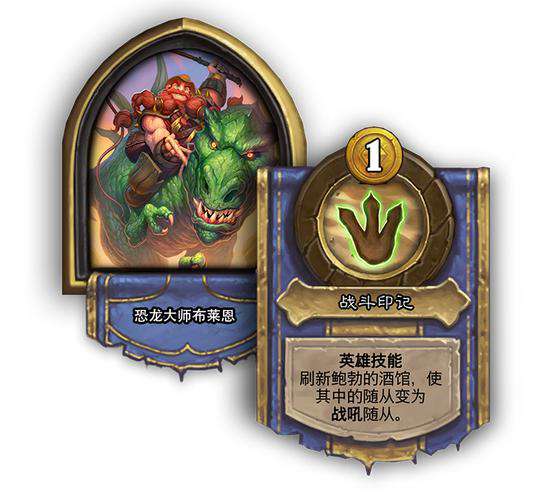 恐龙大师布莱恩 战斗烙印[消耗1枚铸币]:刷新鲍勃的酒馆,使其中的随从变为战吼随从。