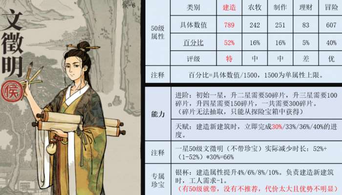 文徵明,建造属性堪比天!再加上立即完成部分进度的技能,建造比任何天都强!