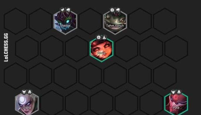 5人口塔姆、安妮、皎月、派克、大树凑3福星2斗士2刺客,前期就算输了也没有关系,我们有福星羁绊基本上只要赢一次经济就能够回来了。