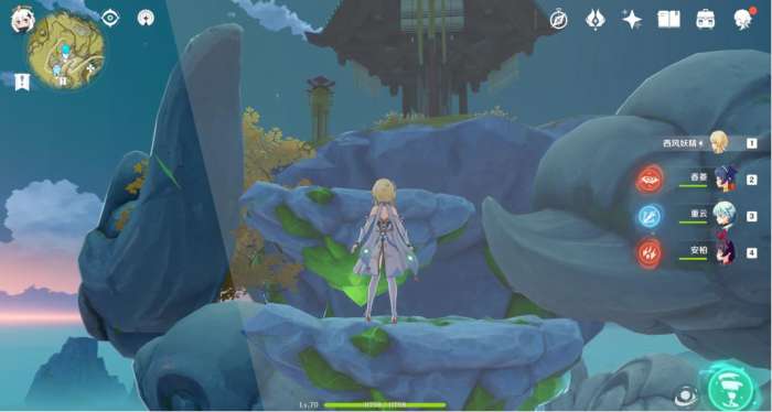 在庆云顶最高处有一处机关(就在庆云顶“顶”字旁边的传送点那里),与机关交互之后,发现需要寻找附近山头的三处神鸟雕像。