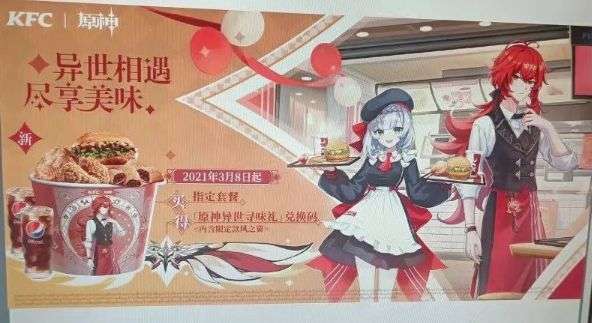 自从之前的1.3版本登顶28国后,原神的联动线下活动也开始慢慢的展开起来,目前有内鬼发出来一张KFC的宣传海报,