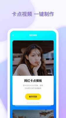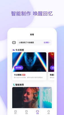第三个功能页是“创作”,在这里,用户可以将自己手机里的照片剪辑成一部小视频,搭配自己喜欢的模板、音乐,记录自己的美好瞬间。