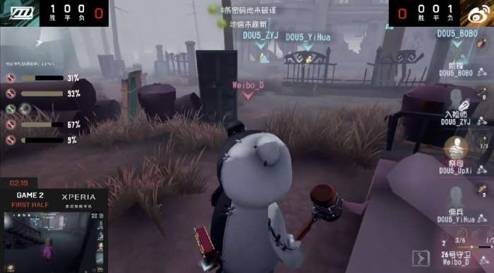 上半场DOU5战队求生者3出1抓拿到胜利。