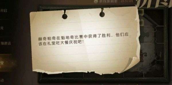 这个线索中虽然提到了魁地奇比赛,但是重点在于后面的半句,也就是礼堂吃大餐,而玩家需要前往的地点就是霍格沃兹礼堂。