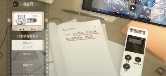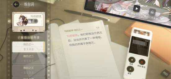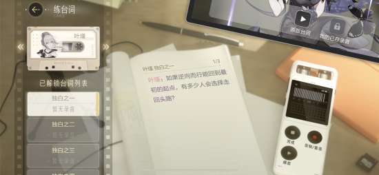 除了表情练习,玩家们还能在游戏中体验演员的台词练习。玩家们不仅可以听到专业配音演员的台词示范,还可以录制自己的版本,进行对比、修正进步!沉浸式闯荡娱乐圈,实属是给《绝对演绎》玩明白了!