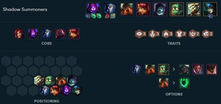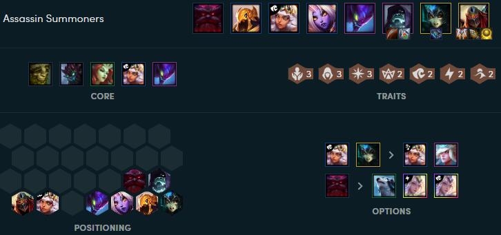 阵容解析:该阵容拥有多个羁绊,可以说是有魔法防御又有后排输出,不过缺少前排,主要利用刺客切后排以及召唤使的召唤物持续消耗,前后夹击对手。