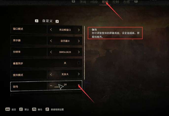 2、在视频中选择伽马,即可调节亮度,伽马值越高,屏幕就越亮。
