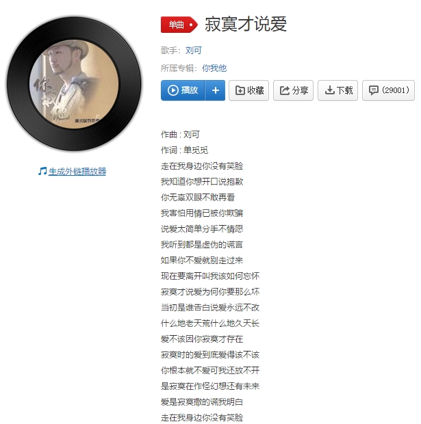 这首歌是由刘可演唱的《寂寞才说爱》;