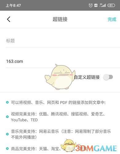 2、然后我们输入超链接说明和超链接的网址,就能够完成超链接的添加了,视频也自然而然添加进去了。