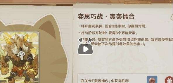 原神游戏「七圣召唤」铸境研炼:奕思巧战·第四期活动包含4个关卡,每个关卡有不同的特殊胜利或失败条件。其中奕思巧战第三关是轰轰擂台,3回合后胜利,选择冻结或者直接出伤的阵容即可。接下来给大家带来了《原神》5.0奕思巧战第三关通关攻略,大家可以参考一下!