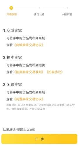 3、根据开通权限——身份认证——人脸识别三步骤来实名认证。