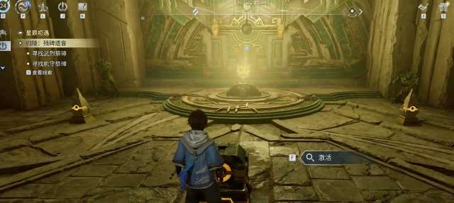 接到任务之后可以转身朝着南面出门,左拐之后前行,然后从平台跳下来。朝着东边走到最内侧的房间,开始第一层石板解谜。先拿右侧的第一层石板牵引,之后放到第三格。搜索之后上第二层用石板直接压住最近的踏板。接着朝西面走两格,踩下踏板可以解锁金光宝箱。拿完宝箱之后向西走上楼梯向南走到尽头,然后去清理小怪。拿起手中的石头朝着北边去解谜解谜的流程其实也是比较轻松的。