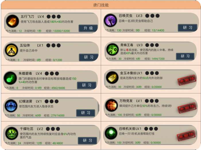 唐门有几个废技能,比如“五仙体”增加命中,还有隐身技能感觉没啥用途
