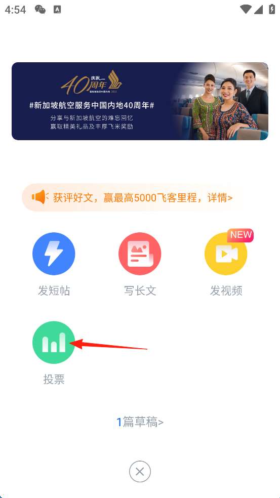 飞客茶馆app怎么发布投票,点击屏幕中间下方的“笔”标识,点击“投票”,输入相关内容后,点击屏幕右上方的“发表”,选择发布板块后,点击有右上方的“发表”。