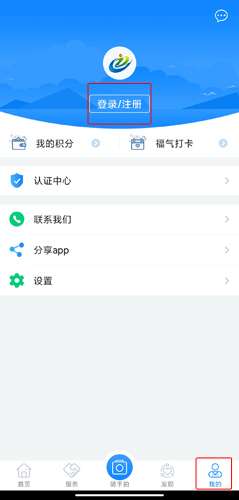 1、用户在我的页面中点击登录/注册按钮;