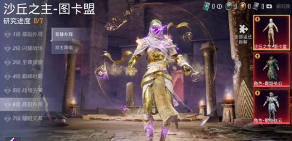 2、唯一的角色套装沙丘之主,是需要1200璀璨碎片进行兑换,保底大概2500以内,升满级需要6万服饰币、4千物资币和四万点券。