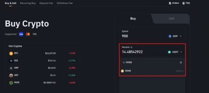 第 3 步:您的帐户经过验证后,您就可以继续进行 Meme 币交易。在币安上购买迷因币的最佳地点之一是通过“购买加密货币”功能,该功能允许您使用法定货币(信用卡/借记卡)购买加密货币。请注意,您可能无法在这里找到所有迷因硬币,只能找到更受欢迎的迷因硬币。