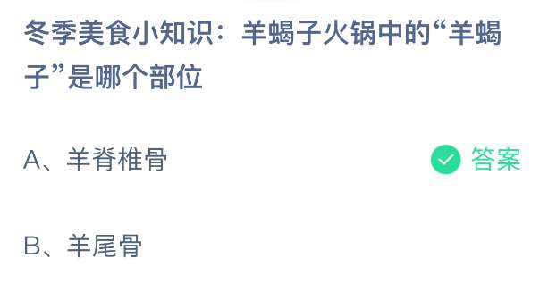 以上就是冬季美食小知识:羊蝎子火锅中的“羊蝎子”是哪个部位,支付宝蚂蚁庄园2025年12月27答案最新,更多精彩内容,请点击关注pk游戏网更新!