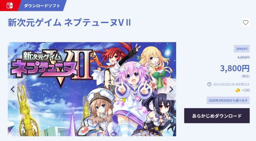 根据任天堂日服eshop公开的新消息,《新次元游戏:海王星VII》将于2020年3月19日登陆NS日服,目前已经开启了特惠预购,以下为官方公开的细节。