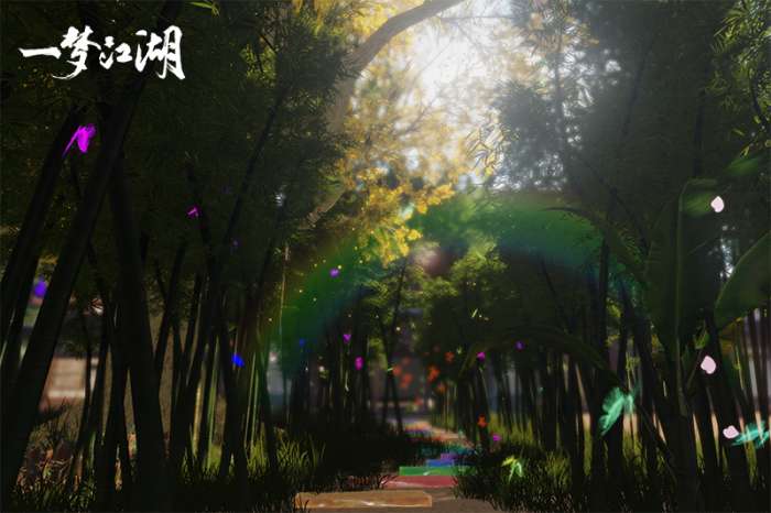 在《一梦江湖》的宅邸里,可以欣赏生机勃勃、奇妙流动的景观。有竹叶落下,带着几分闲趣和飒爽侠意;有漫天飞舞的桃花,让你的宅邸充满少女情怀;还有灿烂的秋叶随风而落,为你带来一股爽朗秋意。有了飞花落英,想要宅邸更加生动,玩家还可以在家里摆放一簇彩蝶或者萤火虫,任它翩翩飞舞,为家园添上几分灵动。