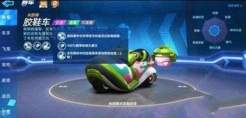 跑跑卡丁车手游胶鞋车是S6赛季中推出的史诗级道具车,外观是一只鞋子的样子,技能属性也都很不错,在道具赛中能有很好的发挥。